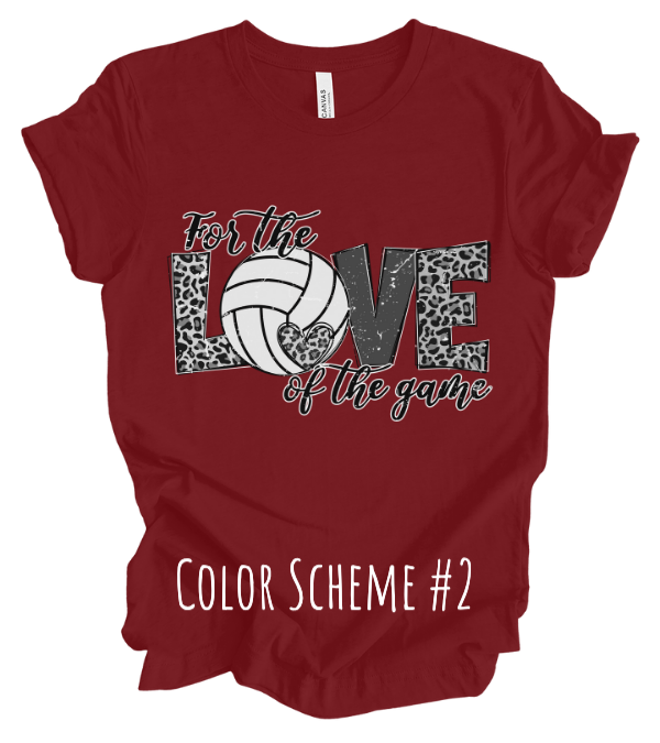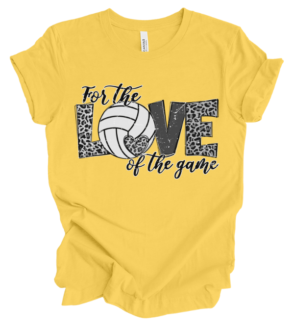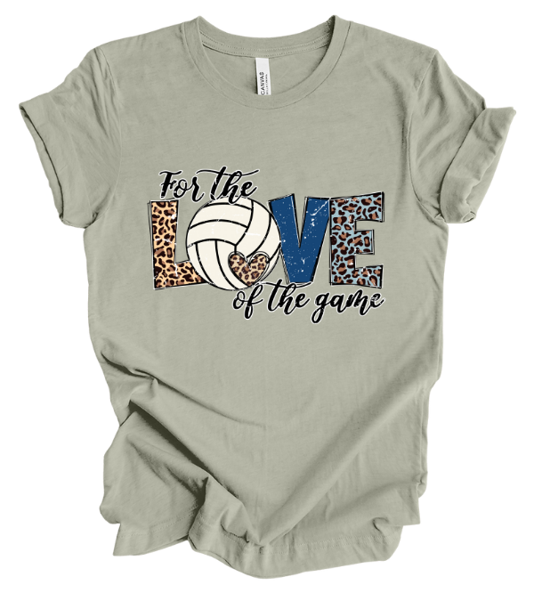 Show your passion for volleyball with our unique "For the Love of the Game" t-shirt! This eye-catching design features "Love" in a trendy leopard print, with the "O" cleverly replaced by a volleyball. It's the perfect statement piece for any player, fan, or coach.