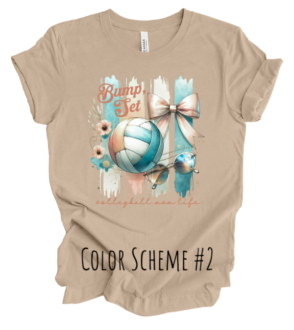 Bump, Set, Volleyball Mom Life - Watercolor T-Shirt - Available in Two Color Schemes!