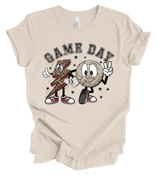 Get ready for Game Day with electrifying style! This dynamic t-shirt features a bold leopard print lightning bolt paired with a classic volleyball, making it the ultimate fan gear. It's the perfect way to show your energy and excitement for every match.