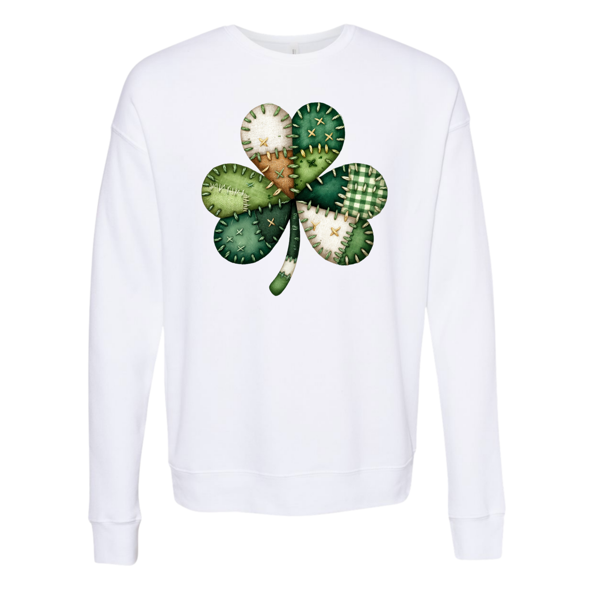 This St. Patrick’s Day crewneck sweatshirt features a stunning patchwork shamrock made up of multiple shades of green, white, and gold, designed to look like real fabric pieces. Finished with faux appliqué stitching, the design gives the charm of hand-sewn detail with the comfort of a soft, everyday sweatshirt.